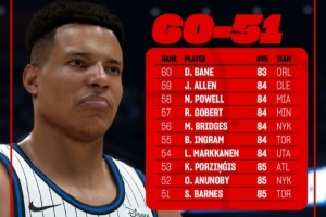 其中,排名第53的老鹰球员波尔津吉斯能力值为85。也就是说,2K26目前能力值85+的球员有53人!
