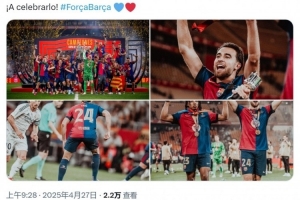 埃里克-加西亚社媒写道:“耶!国王杯冠军,巴萨球迷!奖杯献给所有支持我们的巴萨球迷,无论在塞维利亚,还是在世界各地!让我们一起庆祝吧!”